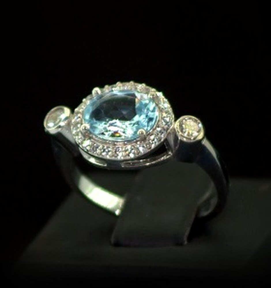 Срібна каблучка 925 проби 3,65 г з блакитним Топазом та фіанітами 2,83 карат