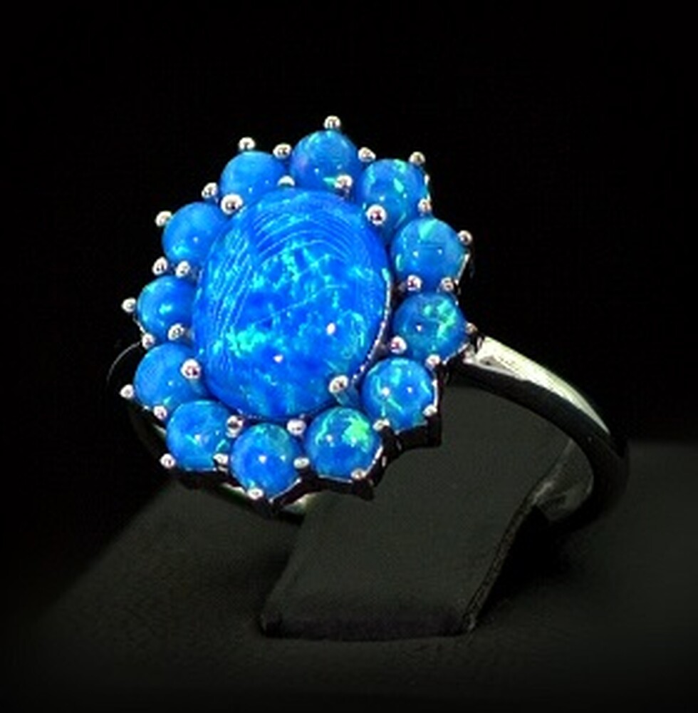 Срібна каблучка 925 проби 3,6 г з блакитними гідротермальними Опалами 2,13 карат