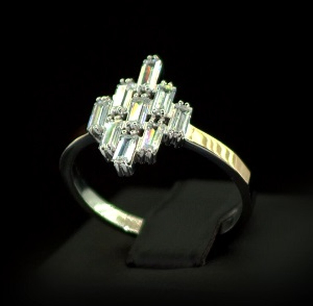 Срібна каблучка 925 проби з позолотою 375 проби 2,85 г з білими Фіанітами 1,8 карат
