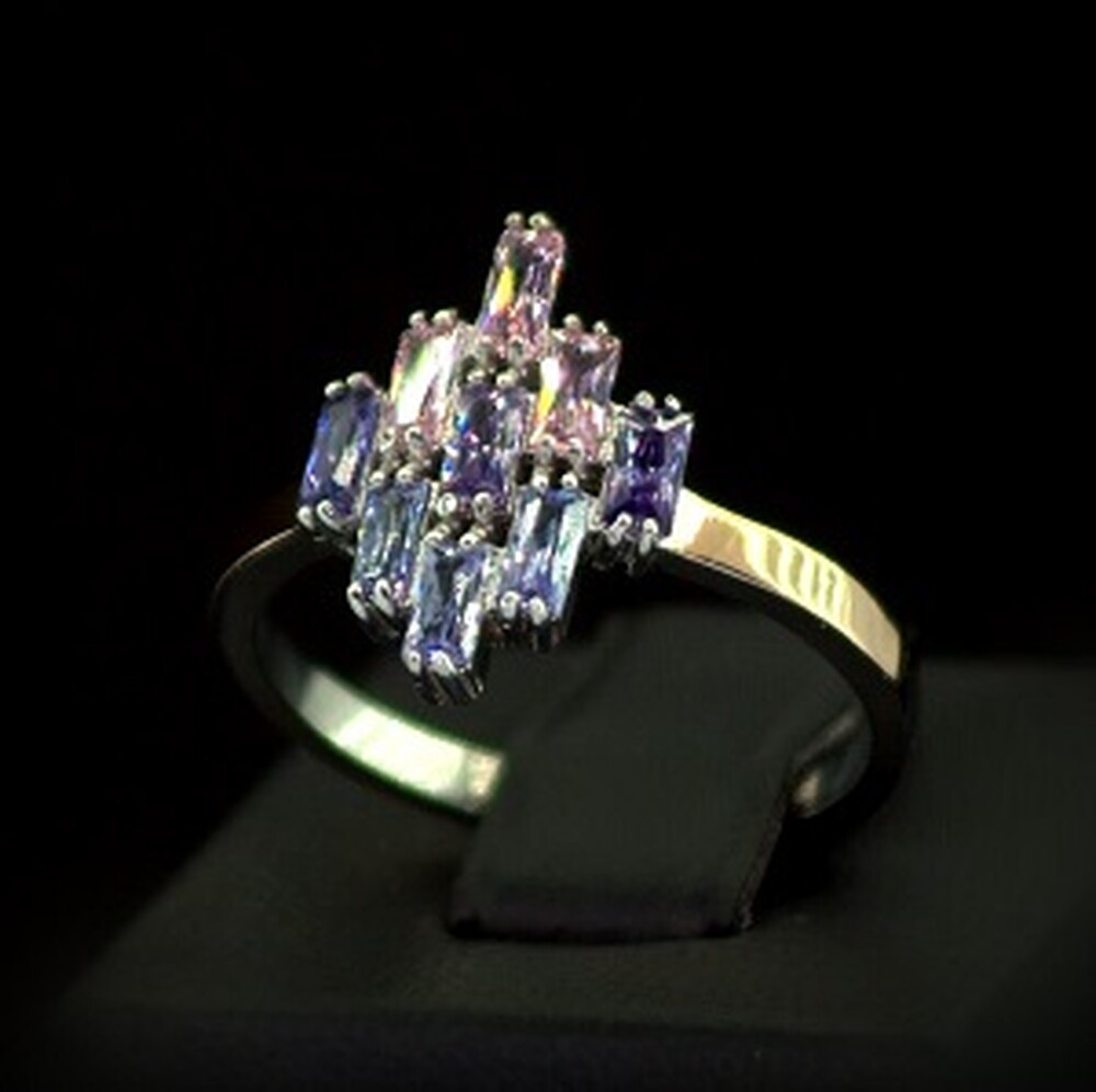 Срібна каблучка 925 проби з позолотою 375 проби 2,78 г з кольоровими Фіанітами 1,8 карат
