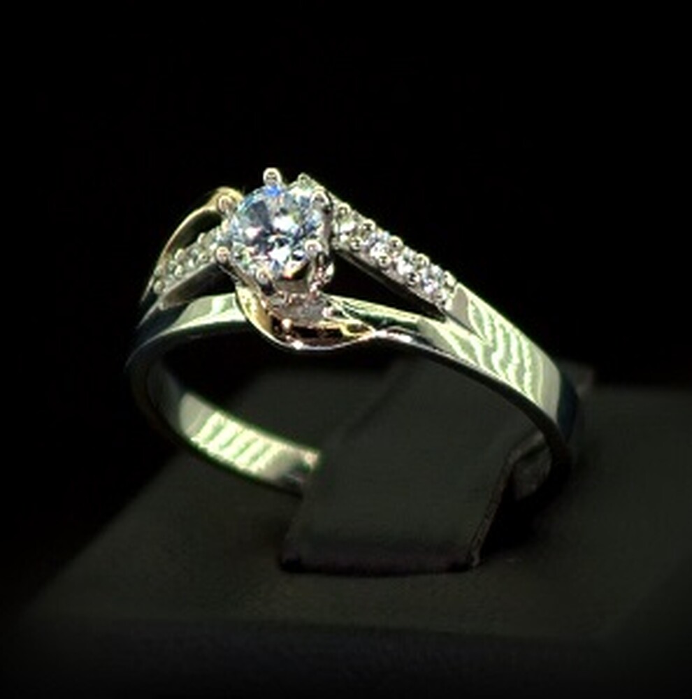 Срібна каблучка 925 проби з позолотою 375 проби 2,33 г з білими Фіанітами 0,9 карат