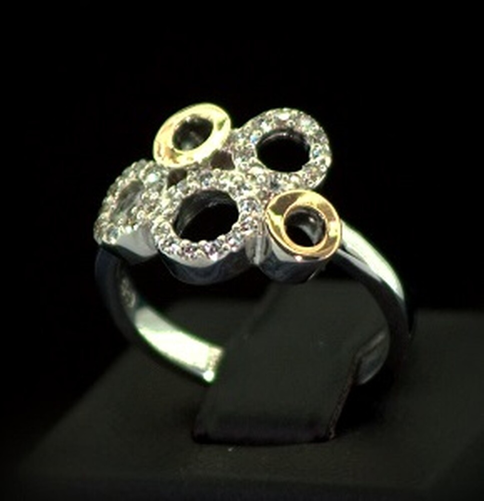Срібна каблучка 925 проби з позолотою 375 проби 3,52 г з білими Фіанітами 0,65 карат