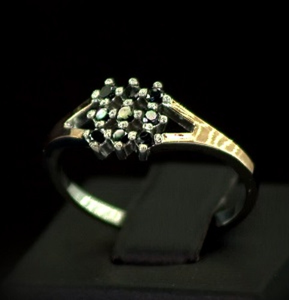 Срібна каблучка 925 проби з позолотою 375 проби 2,4 г з чорними Фіанітами 0,55 карат