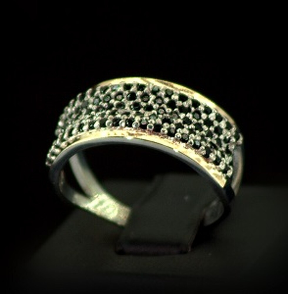 Срібна каблучка 925 проби з позолотою 375 проби 4,14 г з чорними Фіанітами 1,6 карат