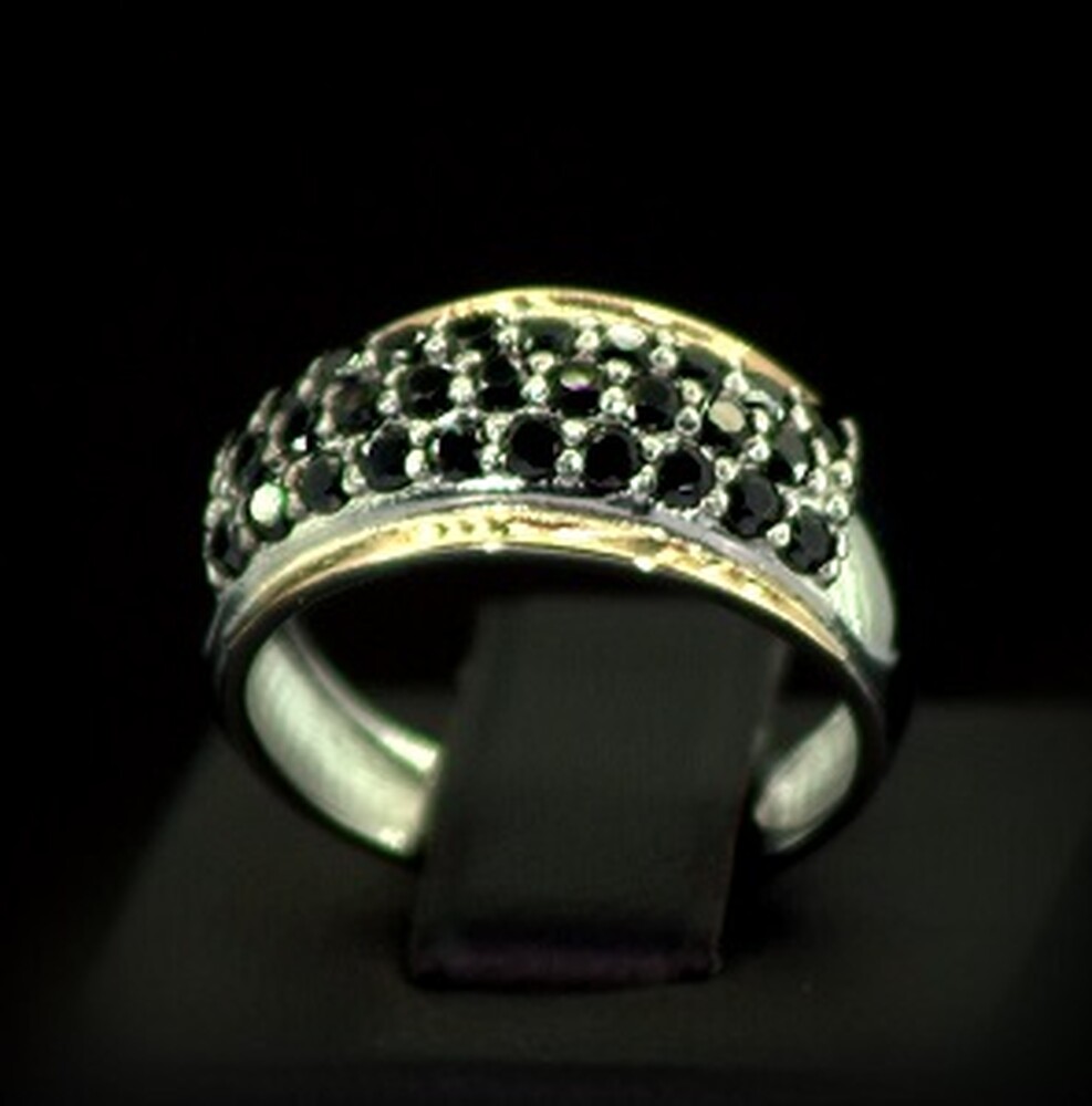 Срібна каблучка 925 проби з позолотою 375 проби 3,75 г з чорними Фіанітами 1,75 карат