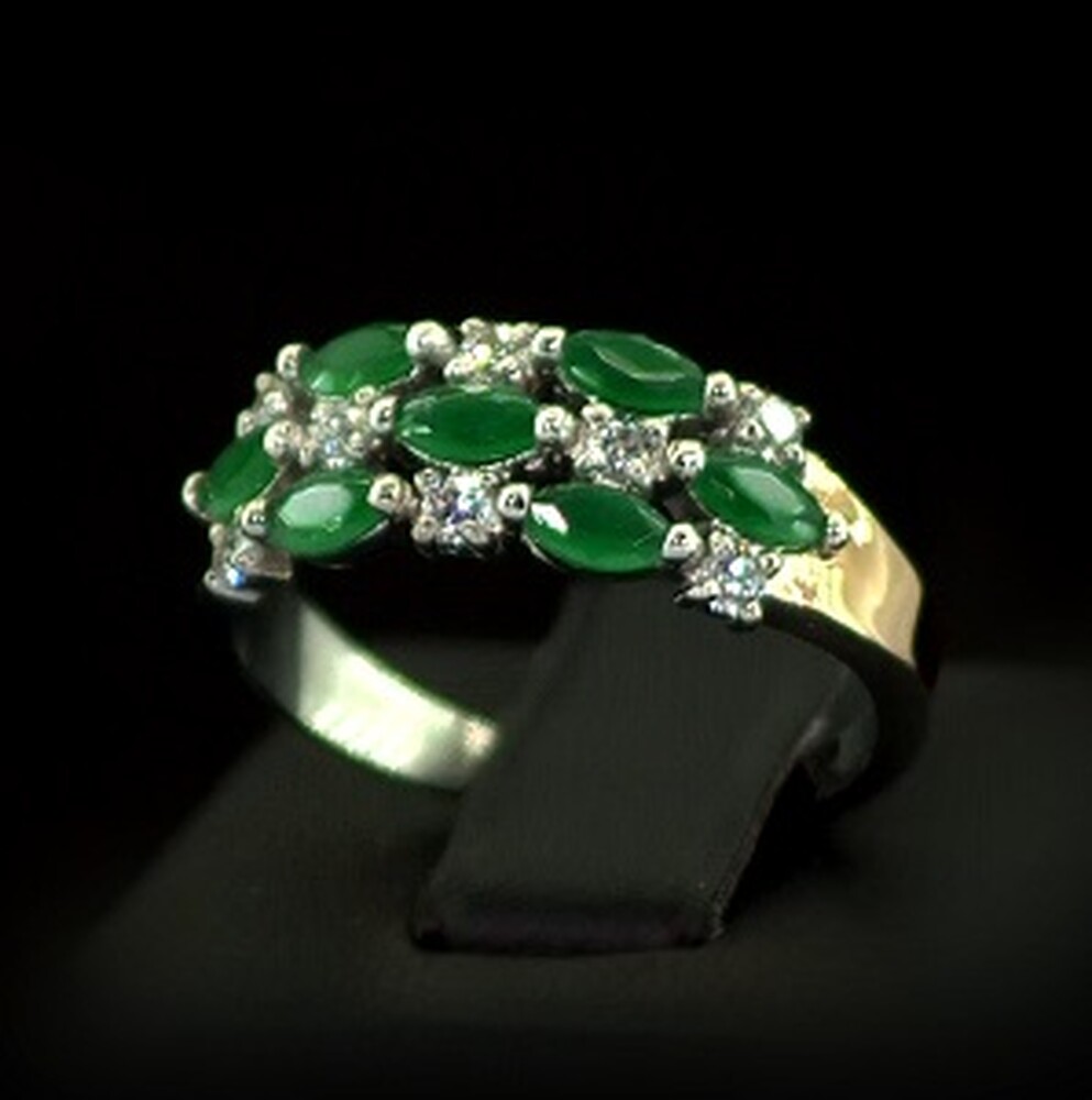 Срібна каблучка 925 проби з позолотою 375 проби 3,08 г з зеленими та білими Фіанітами 2,25 карат