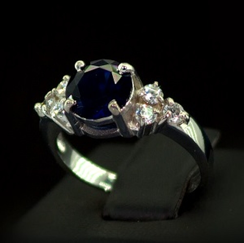 Срібна каблучка 925 проби 3,38 г з синім та білими Фіанітами 2,4 карат
