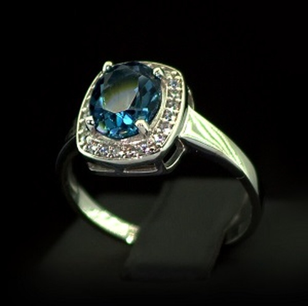 Срібна каблучка 925 проби 3,37 г з Топазом Лондон Блу та фіанітами 2,7 карат