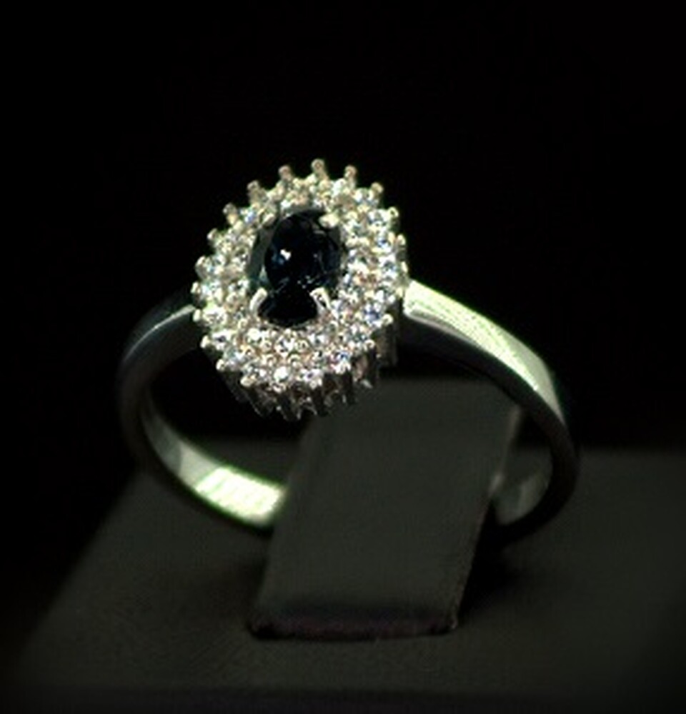 Срібна каблучка 925 проби 2,82 г з Топазом Лондон Блу та фіанітами 0,9 карат