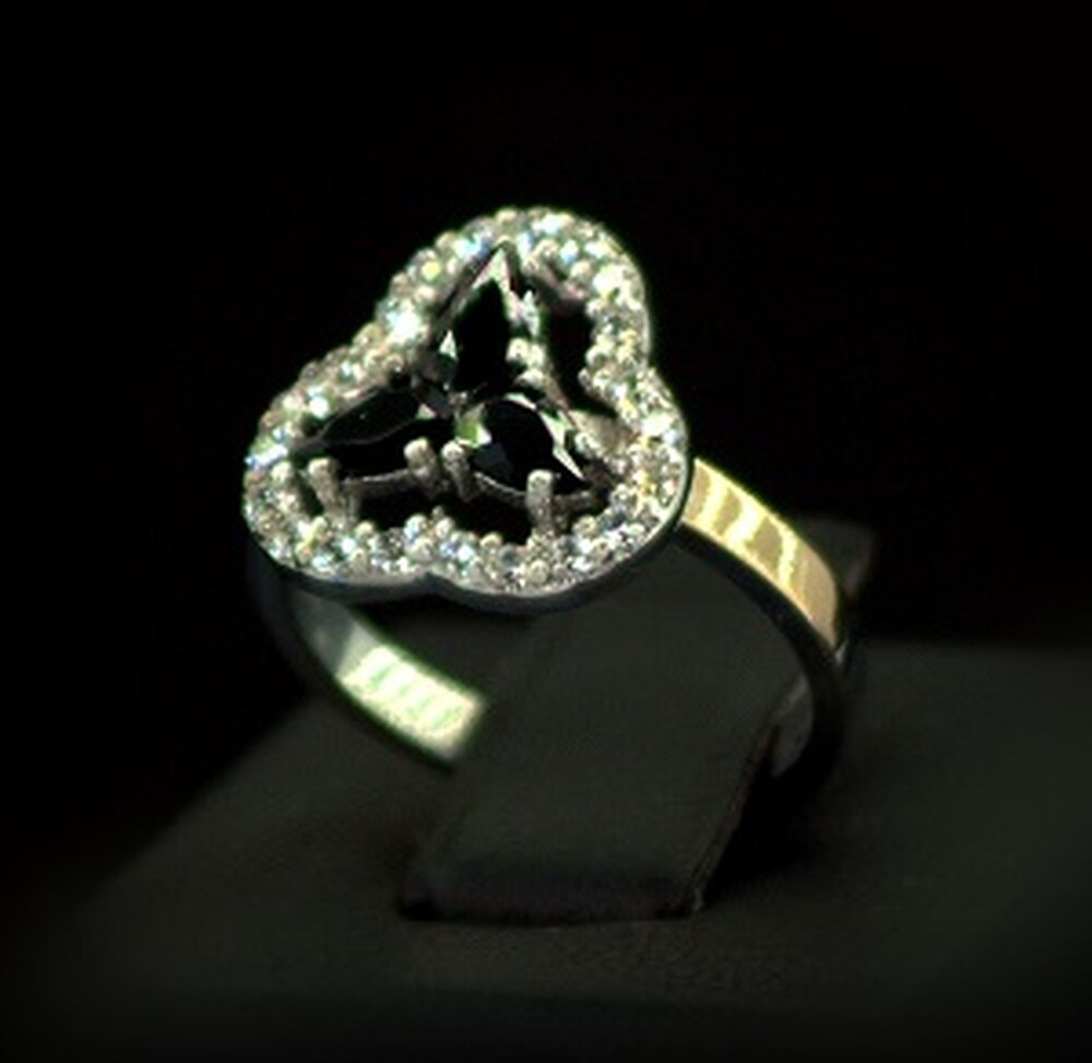Срібна каблучка 925 проби з позолотою 375 проби 2,81 г з чорними та білими Фіанітами 1,55 карат