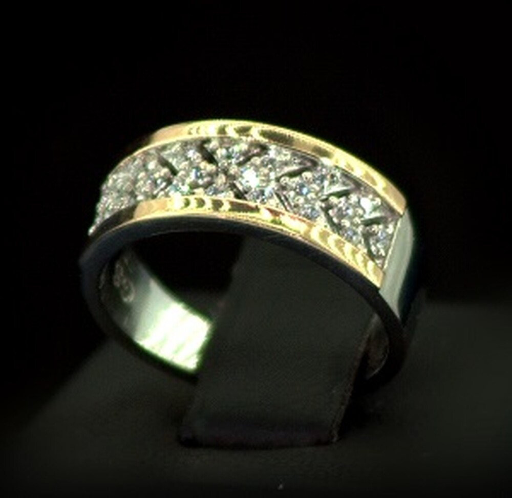 Срібна каблучка 925 проби з позолотою 375 проби 3,49 г з білими Фіанітами 0,4 карат