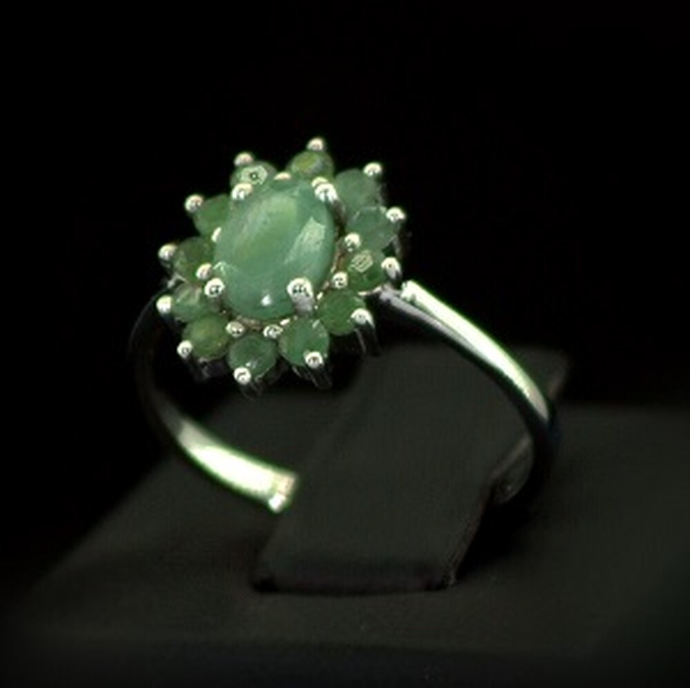 Срібна каблучка 925 проби 2,2 г з бразильськими Смарагдами класу АААА 1,29 карат
