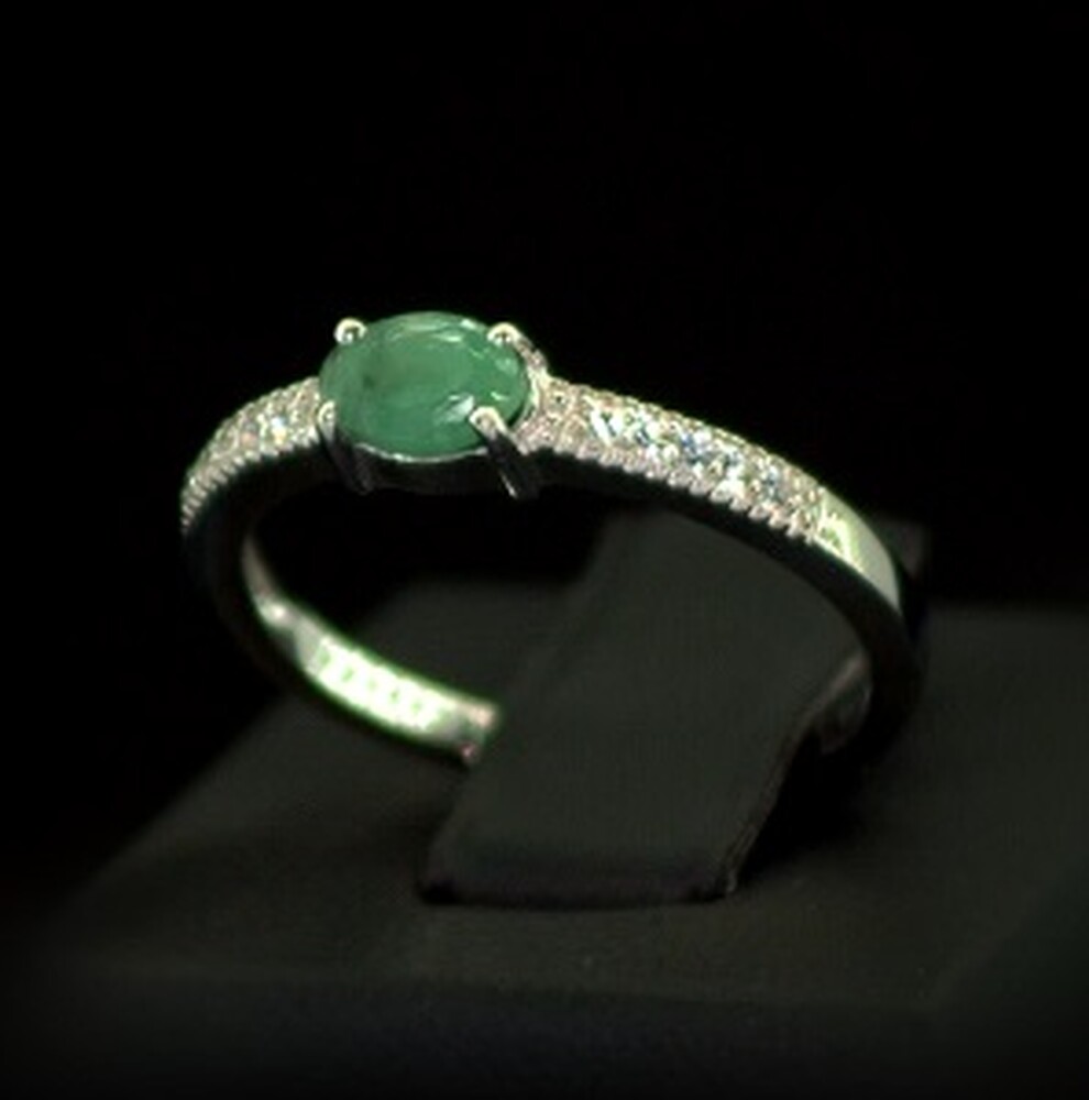 Срібна каблучка 925 проби 1,84 г з бразильським Смарагдом класу АААА та цирконами 0,54 карат