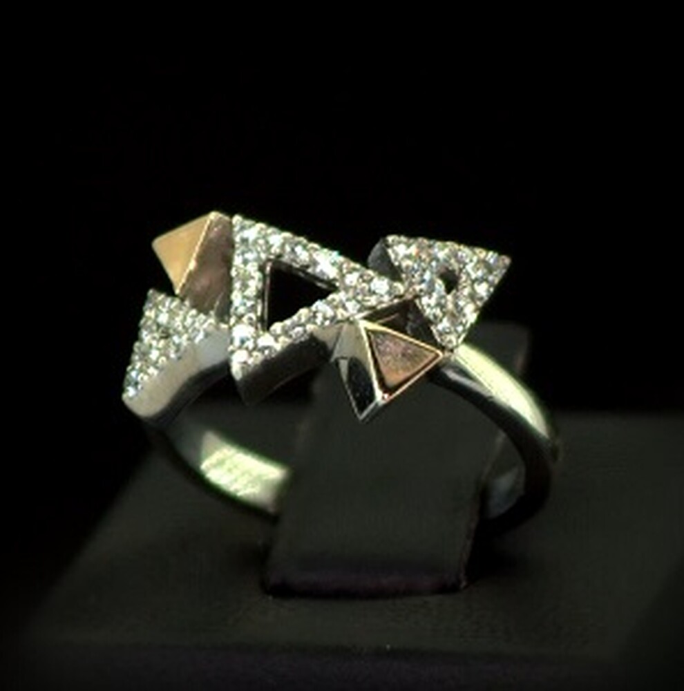 Срібна каблучка 925 проби з позолотою 375 проби 3,65 г з білими Фіанітами 0,6 карат