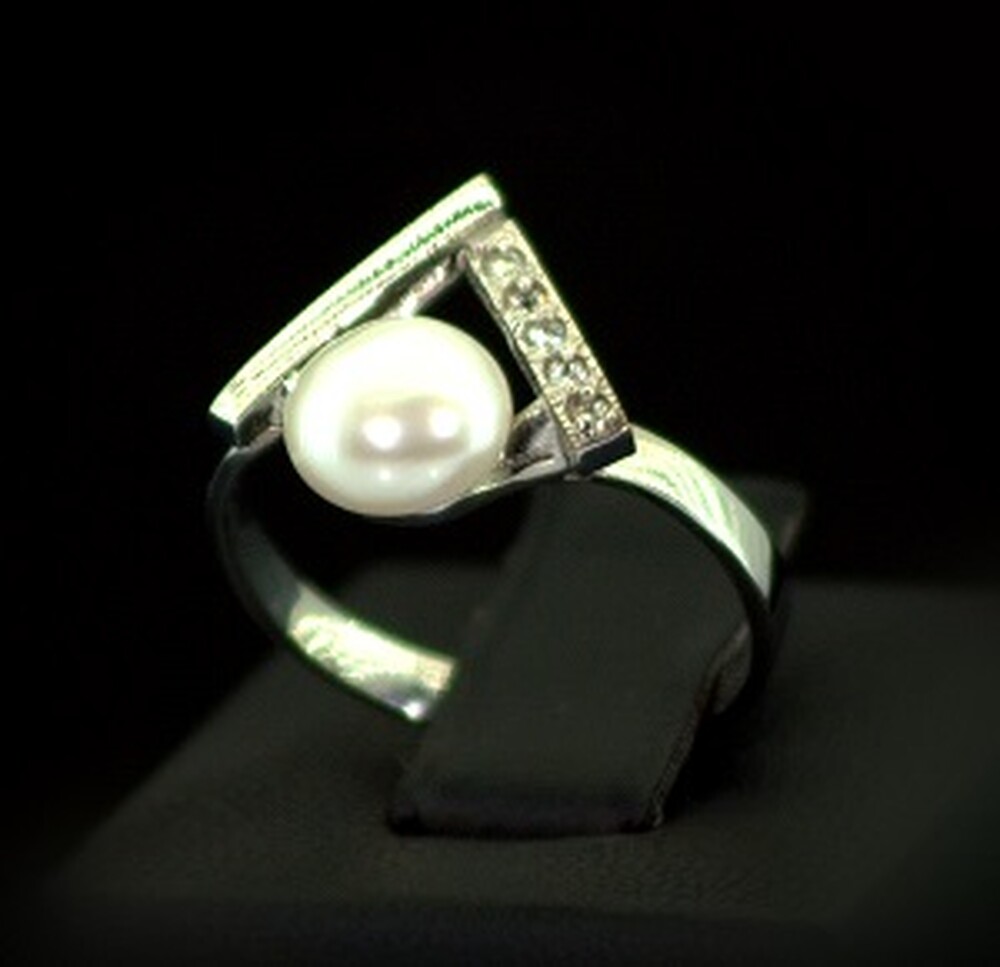 Срібна каблучка 925 проби 2,1 г з Перлиною та цирконами 1,7 карат