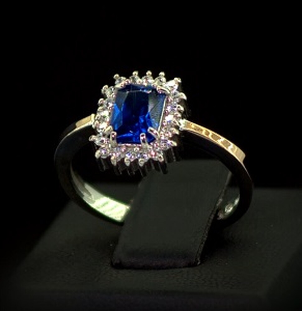 Срібна каблучка 925 проби з позолотою 375 проби 2,72 г з синім та білими Фіанітами 1,95 карат