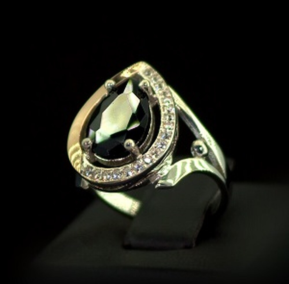 Срібна каблучка 925 проби з позолотою 375 проби 4,56 г з чорним та білими Фіанітами 5,1 карат