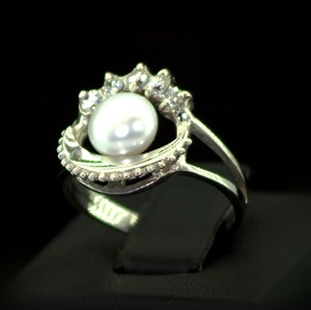 Срібна каблучка 925 проби 2,8 г з Перлиною та цирконами 1,6 карат