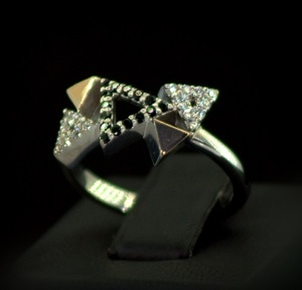 Срібна каблучка 925 проби з позолотою 375 проби 3,56 г з чорними та білими Фіанітами 0,6 карат