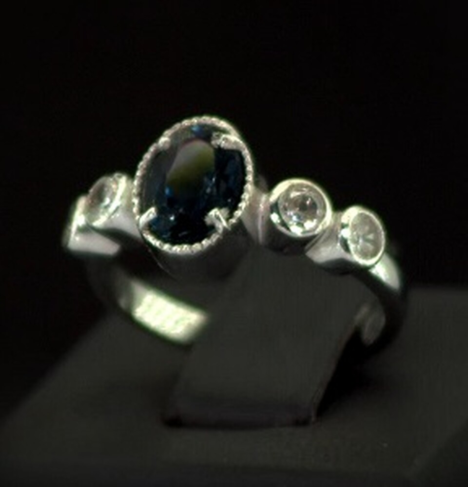 Срібна каблучка 925 проби 3 г з Топазом Лондон Блу та фіанітами 3,4 карат
