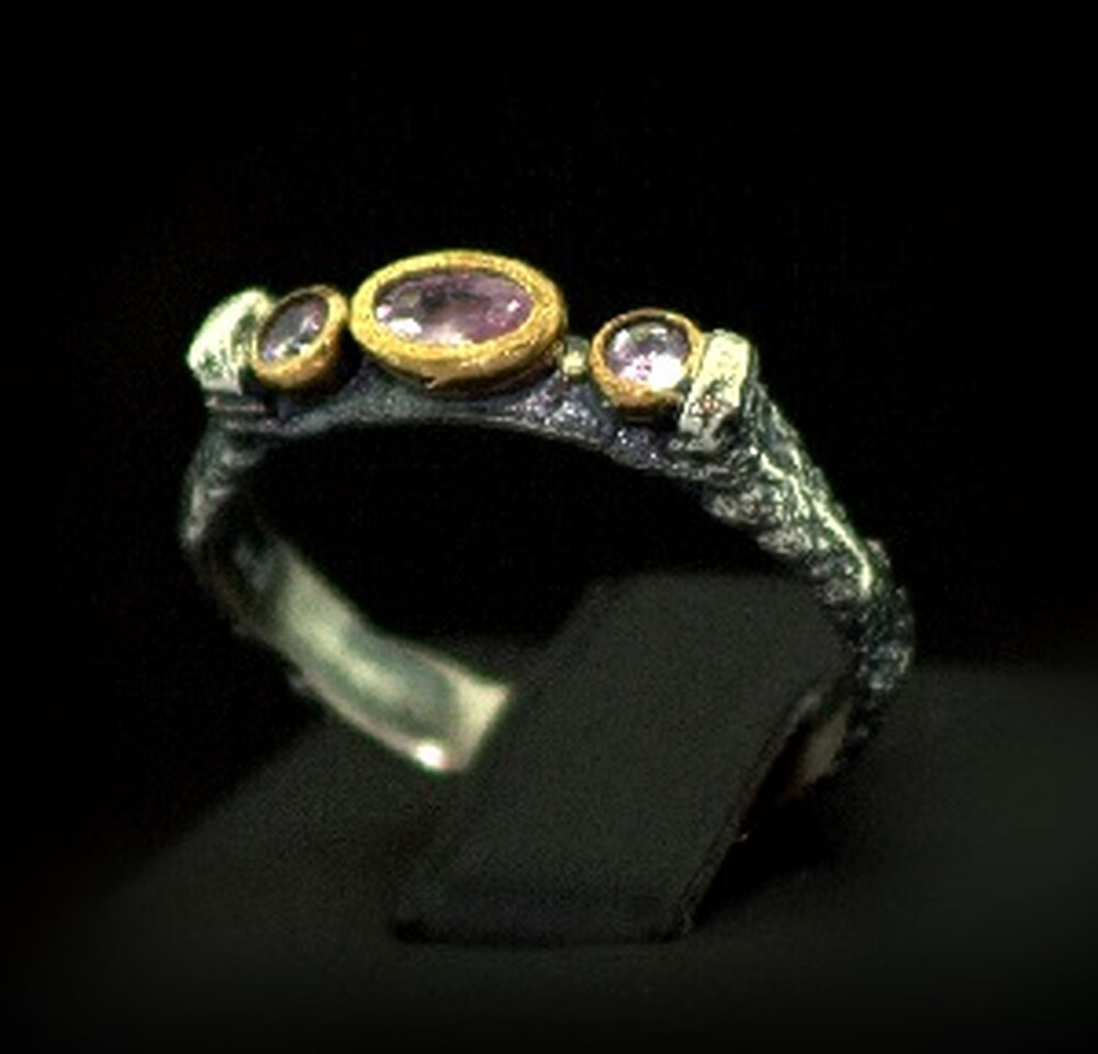 Срібна каблучка ручної роботи 925 проби 3,04 г з рожевими цирконами 0,92 карат